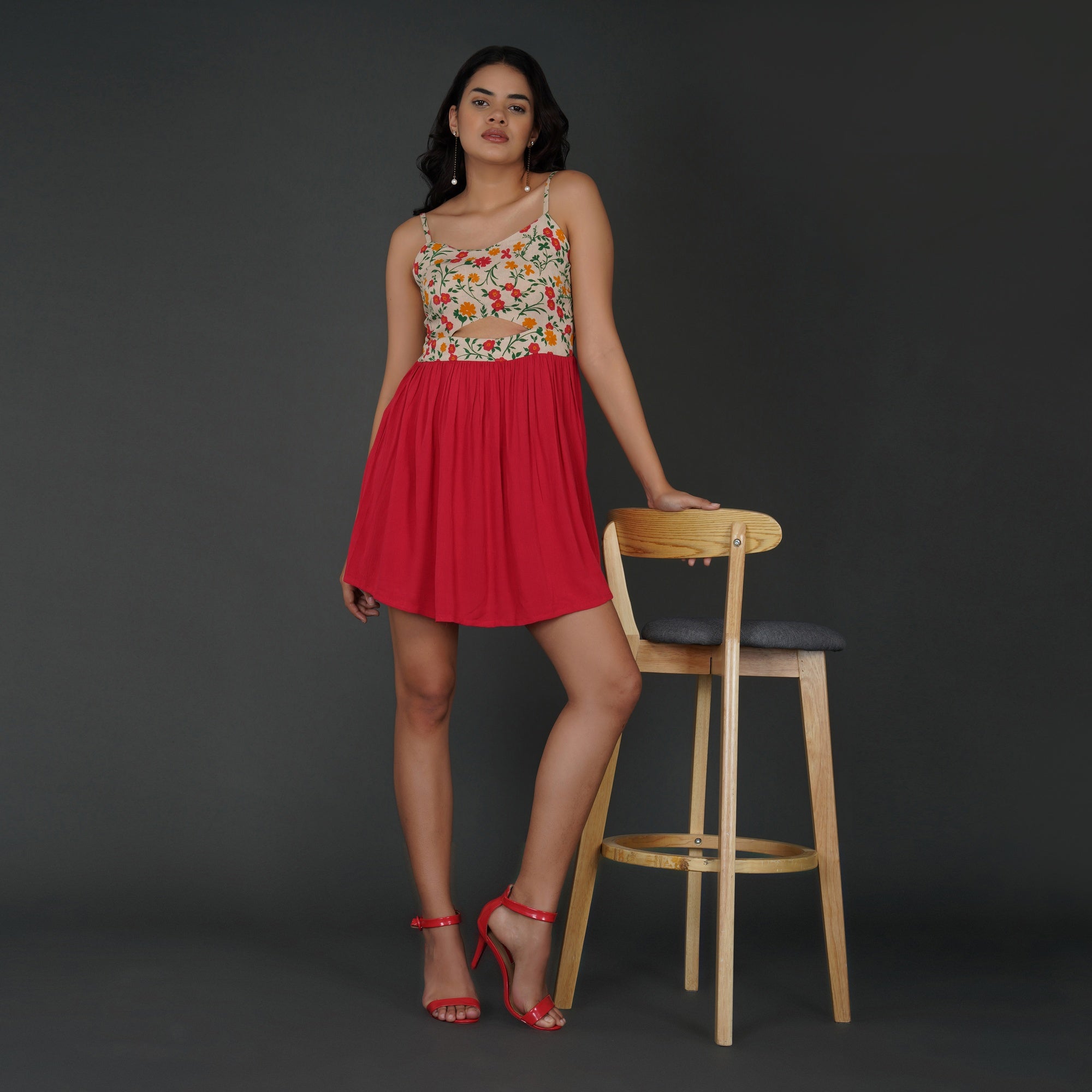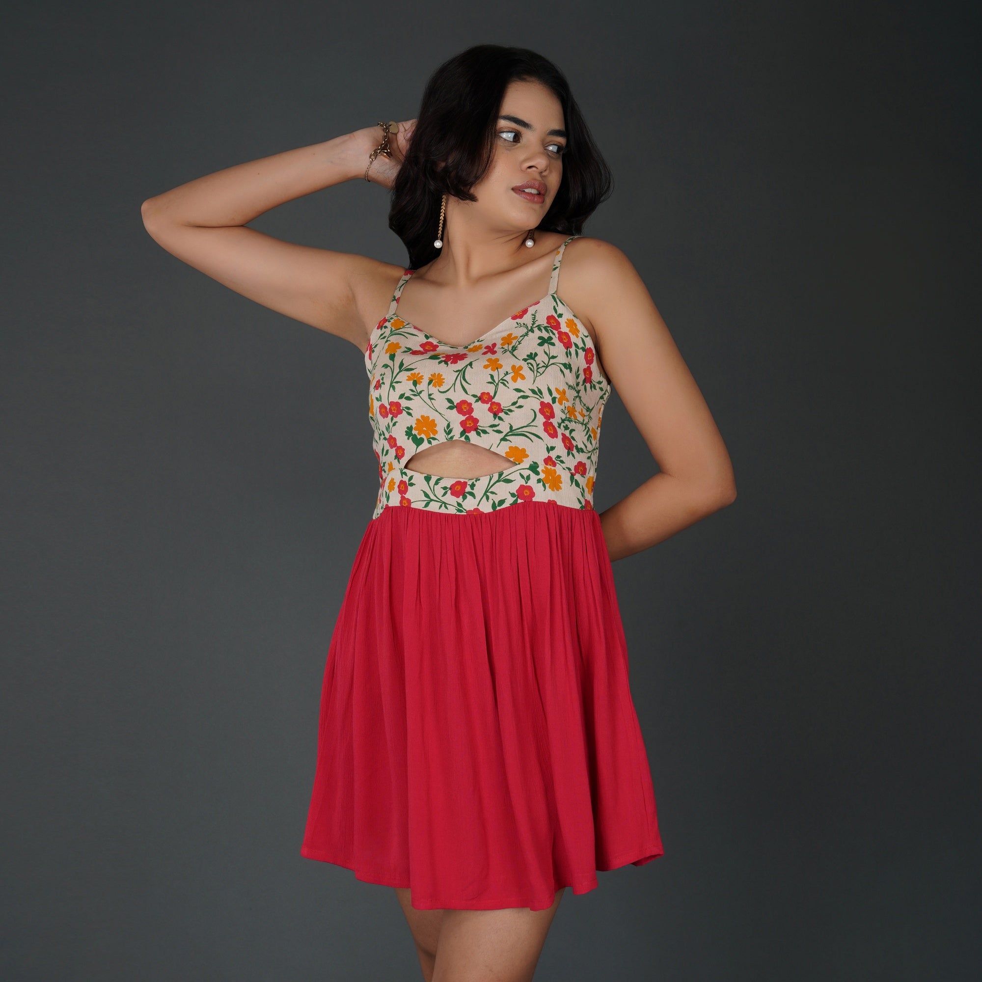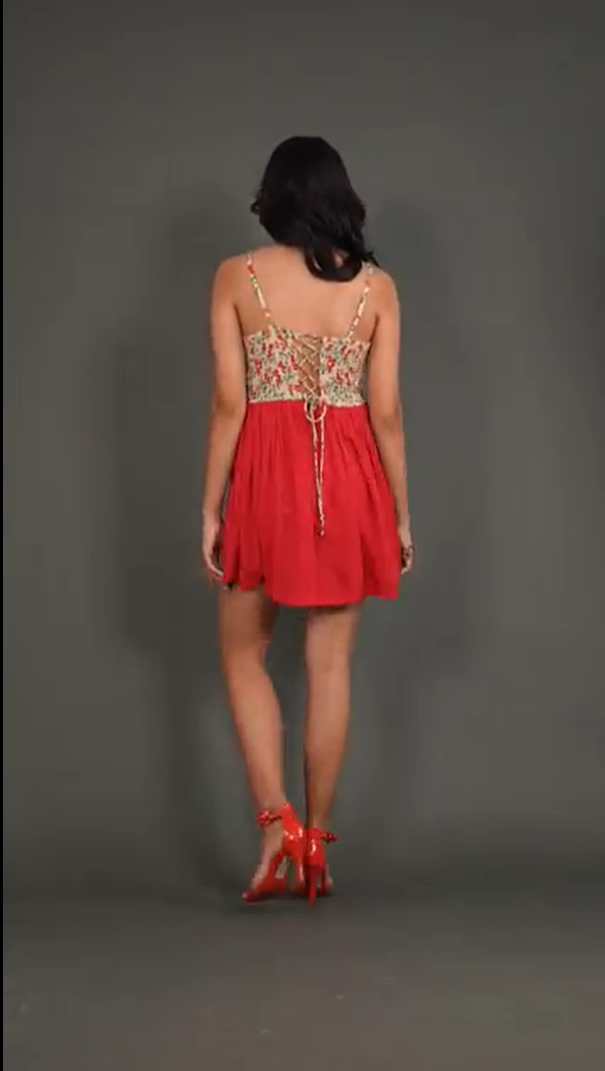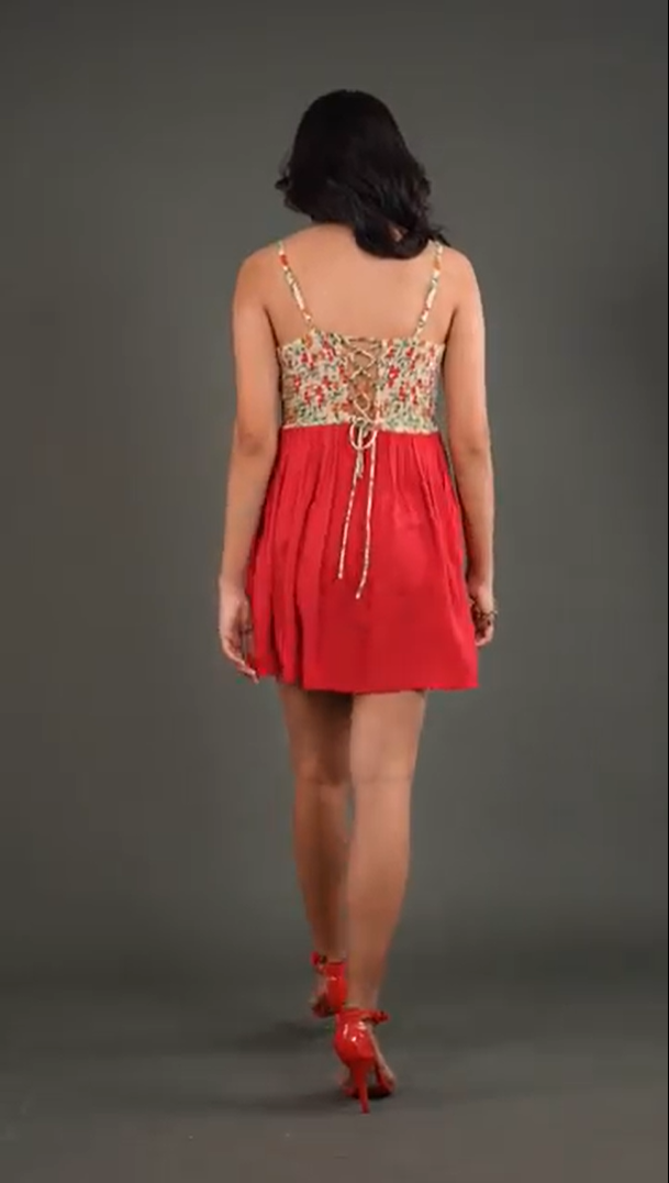 PRODUCT DETAILS SPECIFICATIONS Shape: Fit-and-flare Fit: The fitted bodice transitions into a flared skirt Length: Mini Neck Pattern: Sweetheart neckline in front, corset-style lace-up back Sleeve Length: Sleeveless Sleeve Style: Spaghetti straps Sheerness: Completely Opaque Pattern: Floral Material/Fabric: Rayon Crepe Care Instructions: Hand wash in cold water or on a gentle cycle. Lay flat or hang in shade to dry Lining Requirement: No RECOMMENDATIONS Occasion: Casual outings, brunches, vacations, and day parties Body Type: Complements hourglass, pear, and rectangle body shapes Styling: Pair this dress with block heels or strappy sandals for a chic daytime look SHIPPING AND RETURNS 📦 Shipping:We deliver across India with free shipping on orders above ₹1999.Standard shipping charges of ₹50-₹100 apply for orders below ₹1999.Orders are processed within 1-2 business days and typically delivered in 2-8 business days, depending on location.Track your order in real-time with the tracking details sent via email/SMS.🔄 Returns & Exchanges:Easy 7-day return policy – return unworn, unwashed items in original packaging.Exchanges available based on stock availability.Full refund or replacement for damaged or incorrect products (notify us within 48 hours of delivery).💬 Need Help? Contact our support at contact@trumee.in or call +91-8882098526 (Mon-Sat, 10 AM – 7 PM).