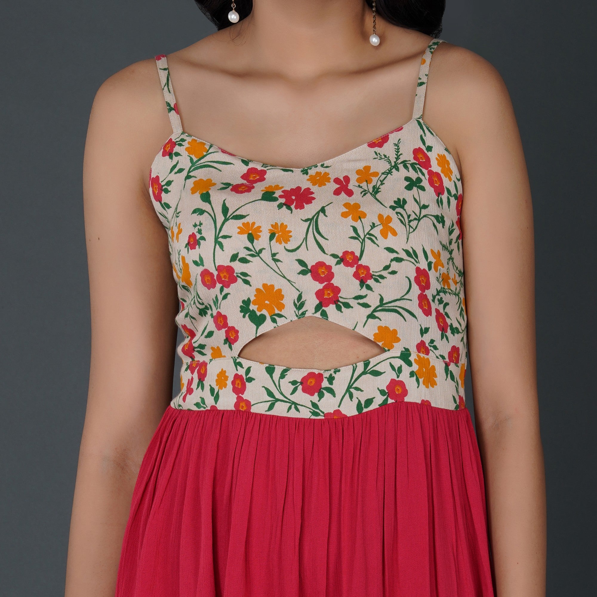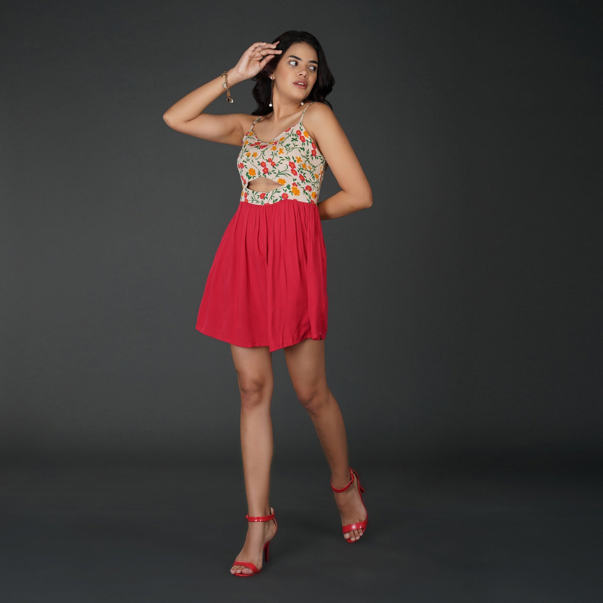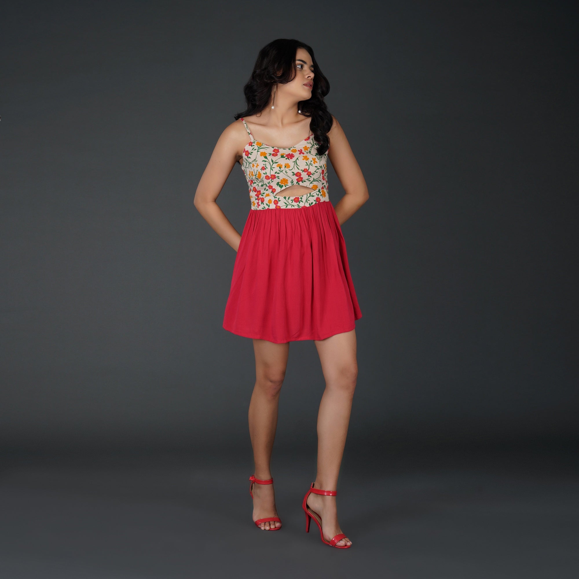 PRODUCT DETAILS SPECIFICATIONS Shape: Fit-and-flare Fit: The fitted bodice transitions into a flared skirt Length: Mini Neck Pattern: Sweetheart neckline in front, corset-style lace-up back Sleeve Length: Sleeveless Sleeve Style: Spaghetti straps Sheerness: Completely Opaque Pattern: Floral Material/Fabric: Rayon Crepe Care Instructions: Hand wash in cold water or on a gentle cycle. Lay flat or hang in shade to dry Lining Requirement: No RECOMMENDATIONS Occasion: Casual outings, brunches, vacations, and day parties Body Type: Complements hourglass, pear, and rectangle body shapes Styling: Pair this dress with block heels or strappy sandals for a chic daytime look SHIPPING AND RETURNS 📦 Shipping:We deliver across India with free shipping on orders above ₹1999.Standard shipping charges of ₹50-₹100 apply for orders below ₹1999.Orders are processed within 1-2 business days and typically delivered in 2-8 business days, depending on location.Track your order in real-time with the tracking details sent via email/SMS.🔄 Returns & Exchanges:Easy 7-day return policy – return unworn, unwashed items in original packaging.Exchanges available based on stock availability.Full refund or replacement for damaged or incorrect products (notify us within 48 hours of delivery).💬 Need Help? Contact our support at contact@trumee.in or call +91-8882098526 (Mon-Sat, 10 AM – 7 PM).
