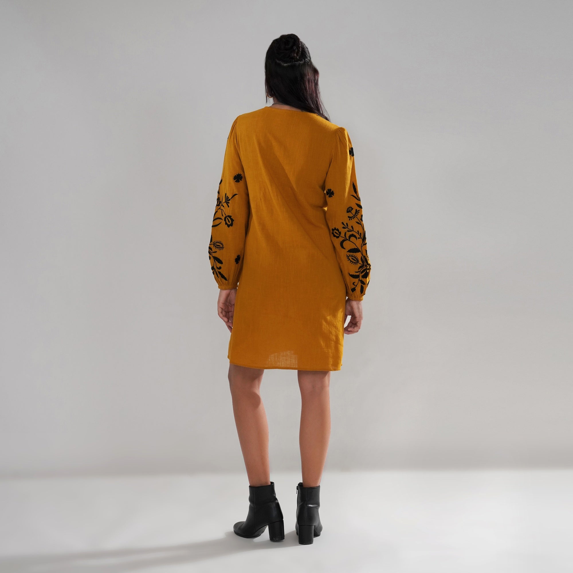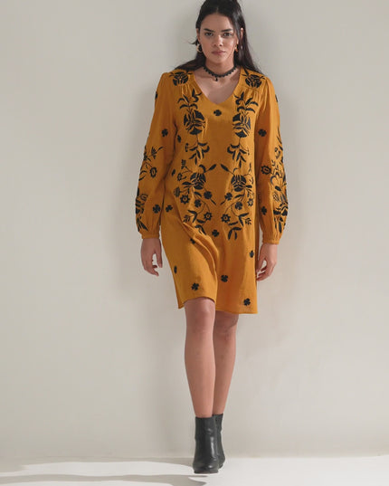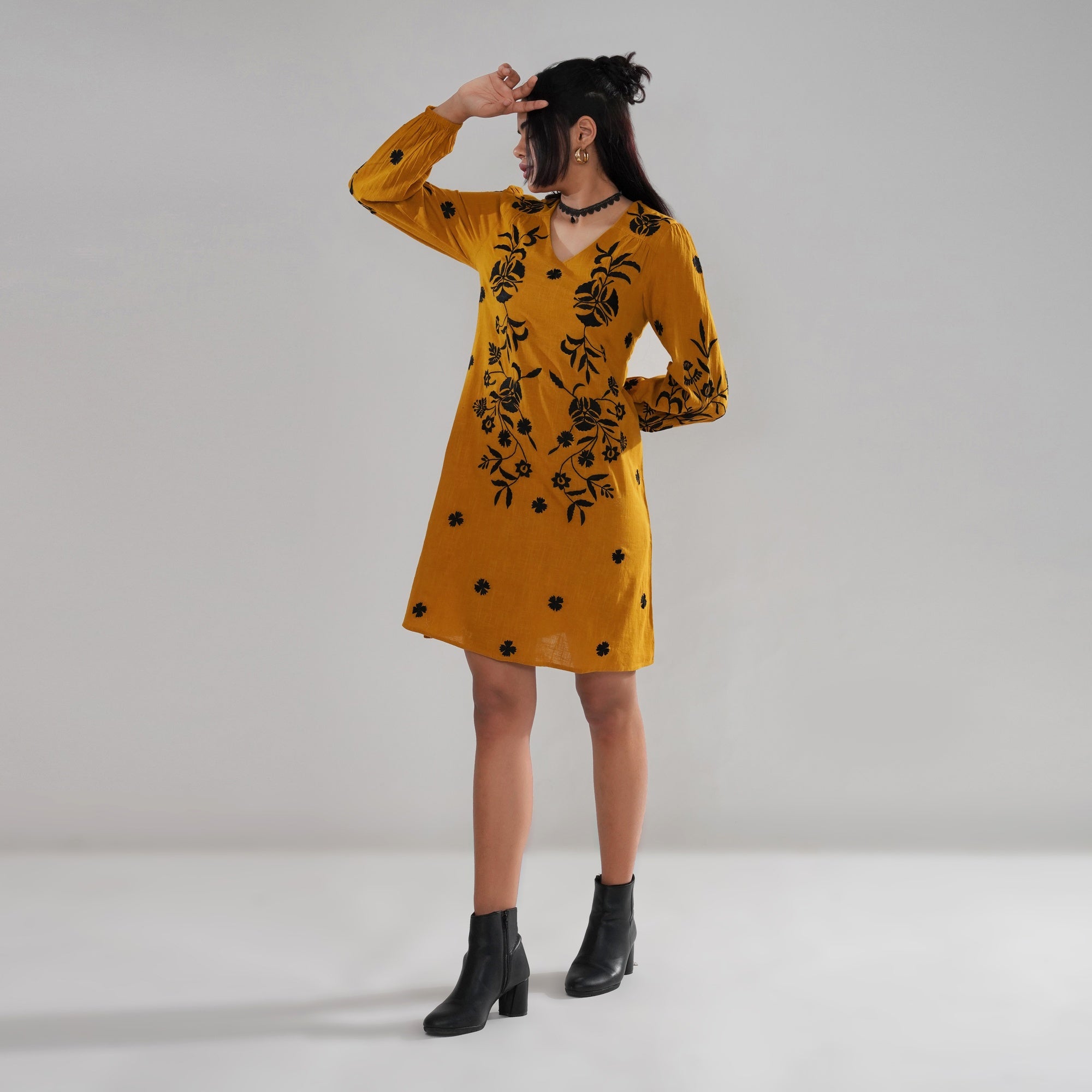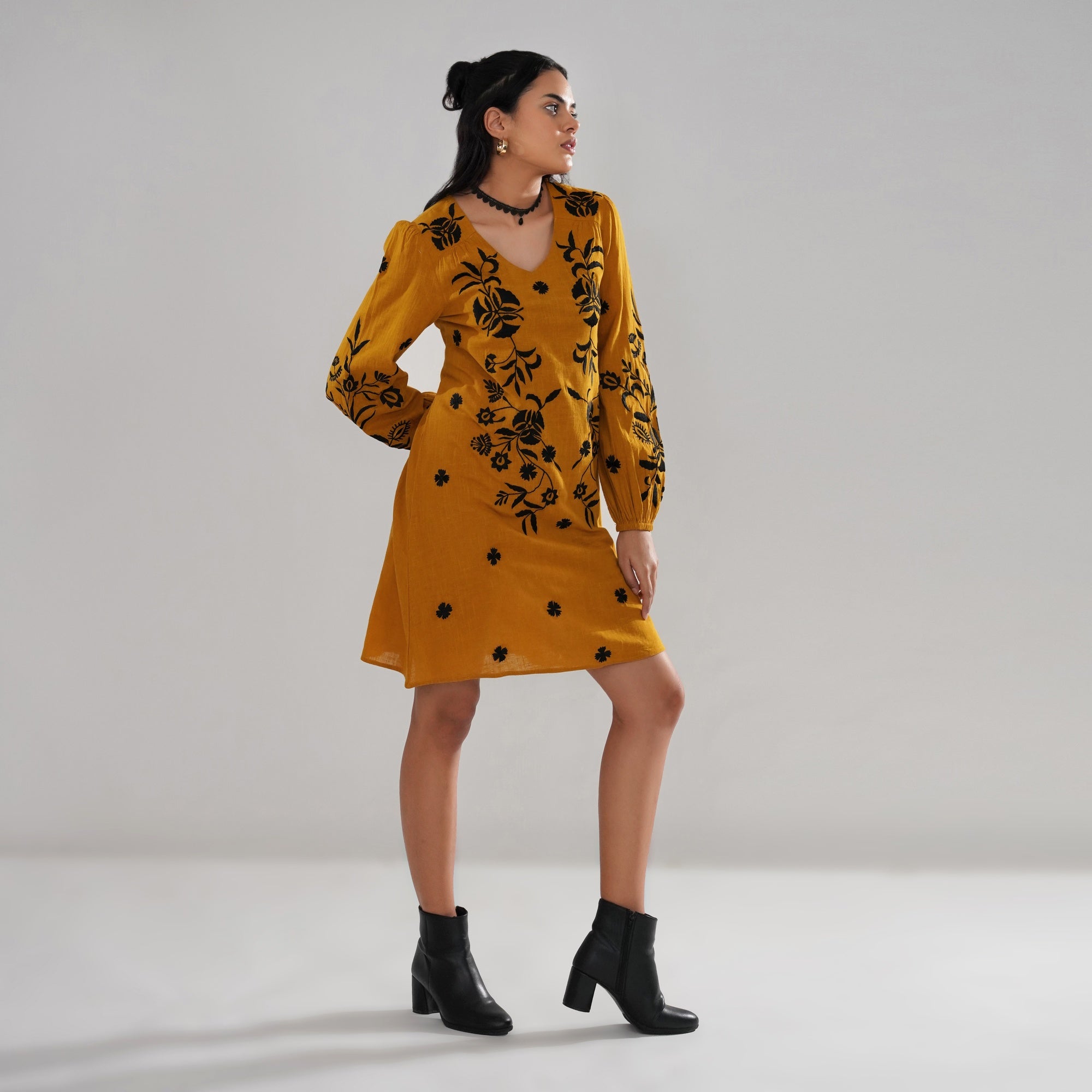 Styling: Pair with black ankle boots for a bold look or strappy sandals for a softer vibe. Add statement earrings or a black choker to complement the embroidery